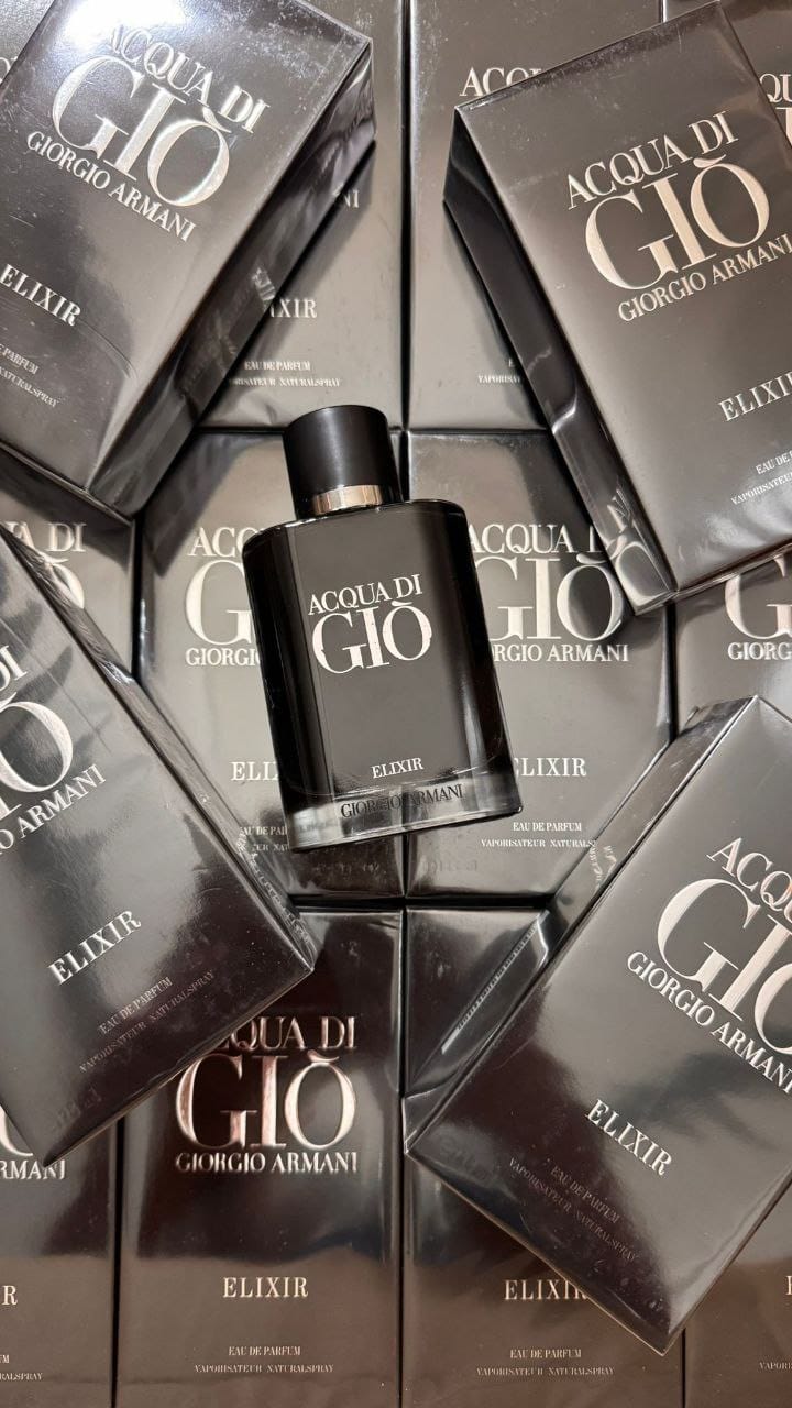 Acqua di Gio elixir di Armani e' una fragranza maschile fresca, elegante e intensa che unisce note marine e agrumate con un cuore aromatico ricco e una base legnosa profonda.Una composizione olfattiva moderna e raffinata che cattura l'essenza del mare,della natura e dell'eleganza maschile, creando una scia persistente e di grande carattere.